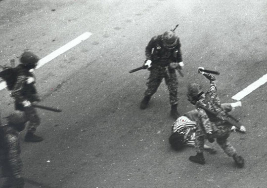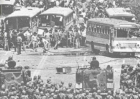 1980 년 5 월 21 일 국군은 전남 도청 앞에 모인 시민들에게 총격을 가해 살해했습니다. 54 명과 약 500 명이 부상했습니다. 5 월 27 일까지 군은 165 명의 시민을 죽이고 약 1,600 명의 시민을 다치게 했습니다.