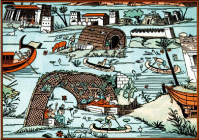 고대 이집트인들이 피라미드를 어떻게 실제로 지었는지에 대한 많은 이론들이 있다. 큰 돌덩어리가 나일강을 따라 기자지로 옮겨진 것으로 추정된다. 그런 다음 썰매와 경사로를 이용해 제자리에 옮겨졌다.