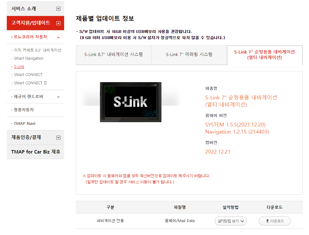 ※ 업데이트 시 펌웨어와 맵을 모두 최신버전으로 업데이트 해주시기 바랍니다. (일부만 업데이트 할 경우 서비스 이용이 불가 합니다.)
